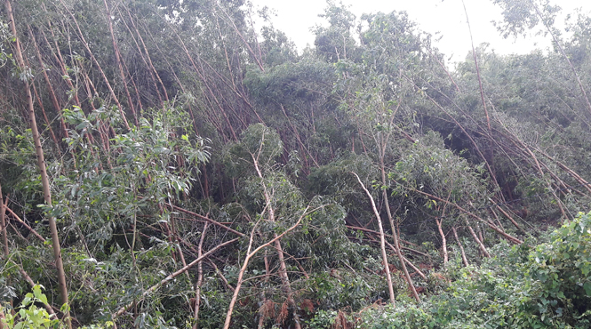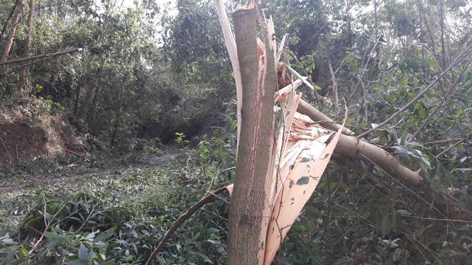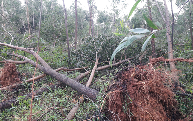 (QBĐT) - Bão số 10 với sức gió mạnh đổ bộ vào tỉnh ta đã gây thiệt hại nặng nề đối với người và tài sản. Trong đó có những cánh rừng sản xuất, nguyên liệu chuẩn bị đến kỳ thu hoạch đã bị gãy đổ hoàn toàn gây thiệt hại lớn về kinh tế cho nhân dân.