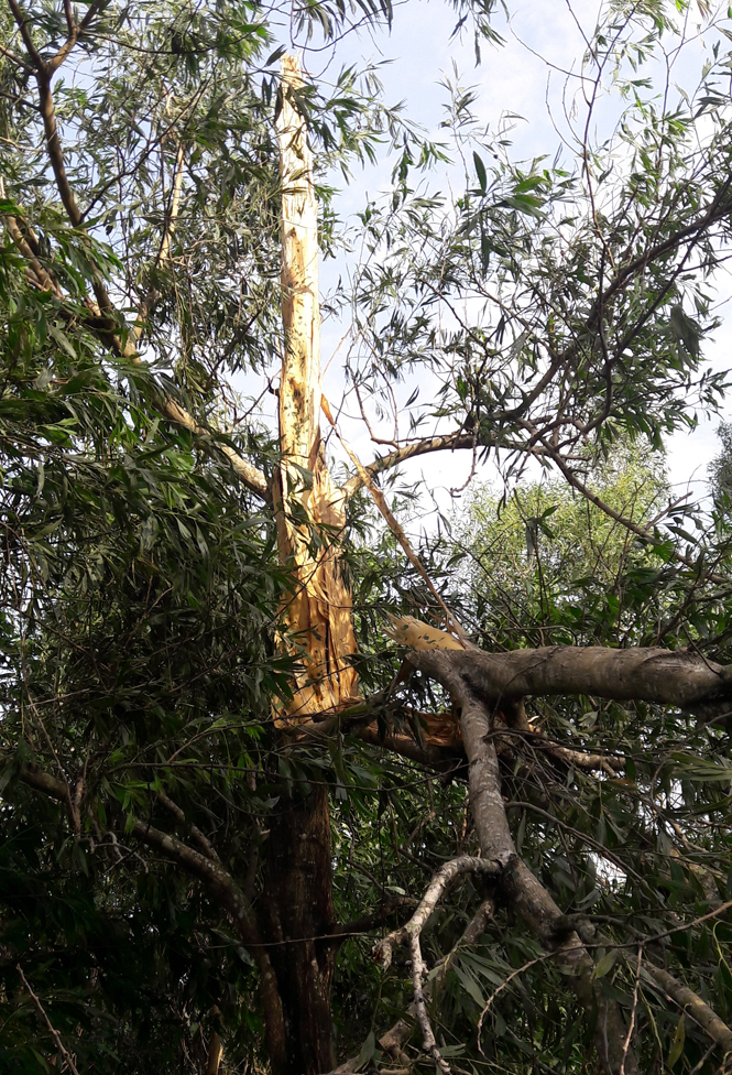 Sau khi bão tan, phóng viên Báo Quảng Bình đã có mặt tại những cánh rừng sản xuất, nguyên liệu của bà con nhân dân các xã Vĩnh Ninh, Hàm Ninh, Trường Xuân (huyện Quảng Ninh).