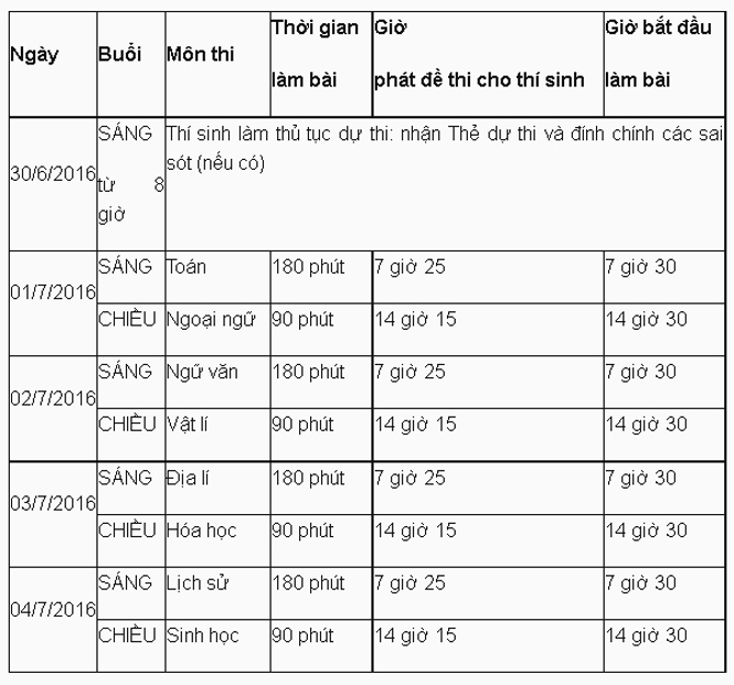 Lịch thi và thời gian làm thủ tục dự thi THPT Quốc gia năm 2016
