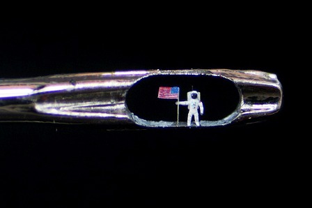 Willard Wigan, 55 tuổi, một nhà điêu khắc người Anh đã tạo ra những bức tượng điêu khắc siêu nhỏ độc đáo ngay trên lỗ kim chỉ bằng một chiếc dao mổ và một chiếc kính hiển vi. Những bức tượng này được xem là nhỏ nhất thế giới.