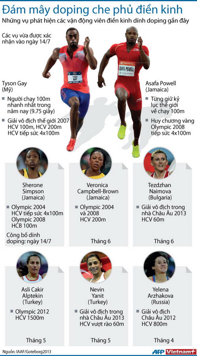 Làng điền kinh thế giới đã liên tiếp đón nhận những cú sốc lớn khi hàng loạt ngôi sao như Tyson Gay (Mỹ), Asafa Powell, Sherone Simpson (Jamaica) dương tính với mẫu thử doping.