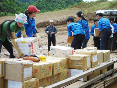 | Lực lượng đoàn viên thanh niên đang thu gom rác thải trên địa bàn thành phố Đồng Hới. |