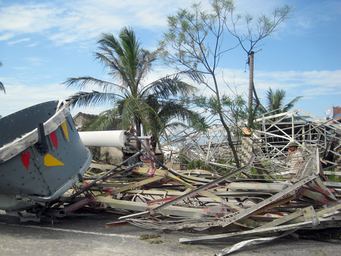 (QBĐT) - Bão số 10 đổ bộ trực tiếp vào Quảng Trạch, gió mạnh cấp 12, cấp 13, giật trên cấp 14 kèm theo mưa to và nước biển dâng đã gây thiệt hại hết sức nặng nề. Theo thống kế thiệt hại, tính đến 15 giờ ngày 3-10, toàn huyện có 1 người chết, 37 người bị thương; khoảng 42.000 nhà bị tốc mái, trong đó tốc mái nặng chiếm 35%; 750 nhà bị hư hỏng nặng, 750 nhà bị ngập nước.