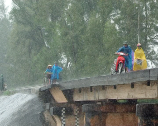 | Bão số 10 gây thiệt hại trên Quốc lộ 1A đoạn đi qua huyện Kỳ Anh, Hà Tĩnh. (Ảnh: Phan Quân-Hoàng Ngà/TTXVN) |