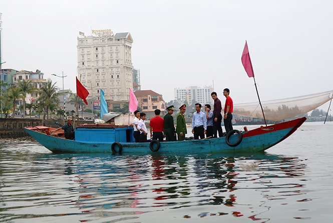 Lực lượng trên tàu có 8 anh em và thêm nhóm phóng viên chúng tôi rời cảng Gianh lúc kim đồng hồ chỉ vào con số 2 của ngày mới. Đêm trăng thượng tuần mờ ảo. Chỉ những con thuyền nhỏ của ngư dân câu mực là sáng đèn. Thuyền trưởng Hoàng Anh Long chỉ tay ra vùng tối: “Tàu đánh giã cào thường tắt đèn nên rất khó nhận ra. Chỉ có kinh nghiệm quan sát tàu trong đêm mới biết được”. Tàu tuần tra đi hơn 2 giờ đồng hồ, vượt qua vùng biển của ngư dân câu mực.