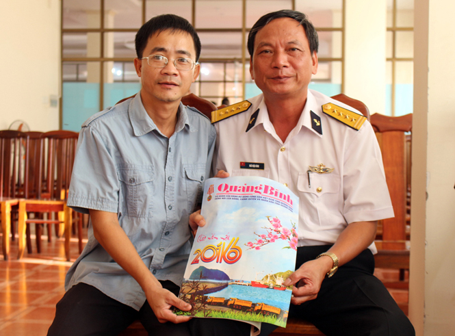 Trên Trường Sa Đông, trung tá Trần Văn Luận giới thiệu cho tôi những người con quê hương Quảng Bình đang công tác tại đảo: trung úy Trương Quốc Toản quê xã Cao Quảng; trung úy Nguyễn Ngọc Khảm, xã Thạch Hóa (Tuyên Hóa); đại úy quân y Nguyễn Thành Trung, quê xã Hoa Thủy (Lệ Thủy)... Chút thời gian ngắn ngủi, tôi chỉ kịp kể sơ qua cho đồng hương lính đảo chút chuyện Quảng Bình làm quà. Thế thôi mà ấm lòng... để quê hương vẫn hiện diện bên các anh thủy chung, trọn nghĩa vẹn tình.