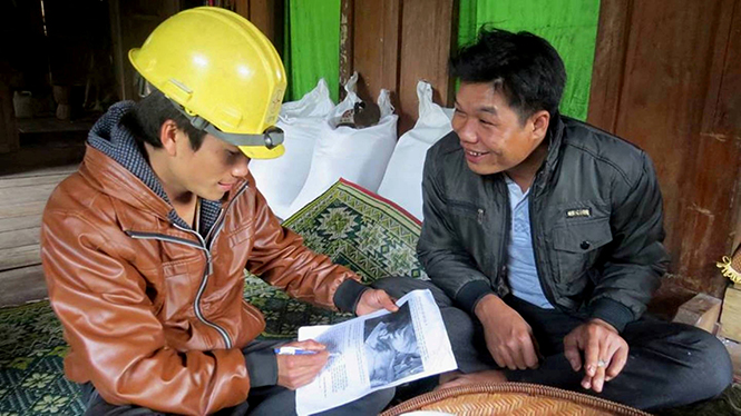 | Hợp sức kéo chiếc lưới đầy ắp hến. |