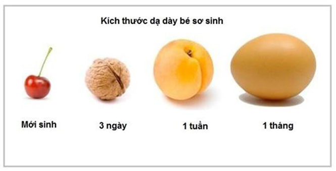 Dạ dày của trẻ sơ sinh rất nhỏ, chỉ bé bằng quả anh đào, đủ sức chứa 5-7 ml sữa (1-1,4 thìa cà phê).