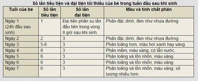 • Bé đại tiện đủ (xem bảng dưới).