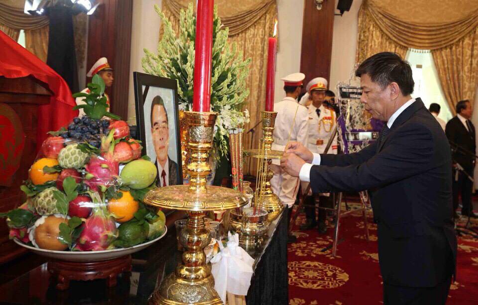 (QBĐT) - Ngày 20-3, Đoàn đại biểu tỉnh Quảng Bình do đồng chí Nguyễn Hữu Hoài, Phó Bí thư Tỉnh uỷ, Chủ tịch UBND tỉnh làm trưởng đoàn đã đến hội trường Thống Nhất (TP. Hồ Chí Minh) viếng nguyên Thủ tướng Phan Văn Khải.