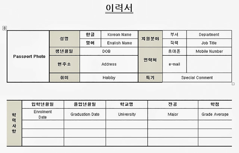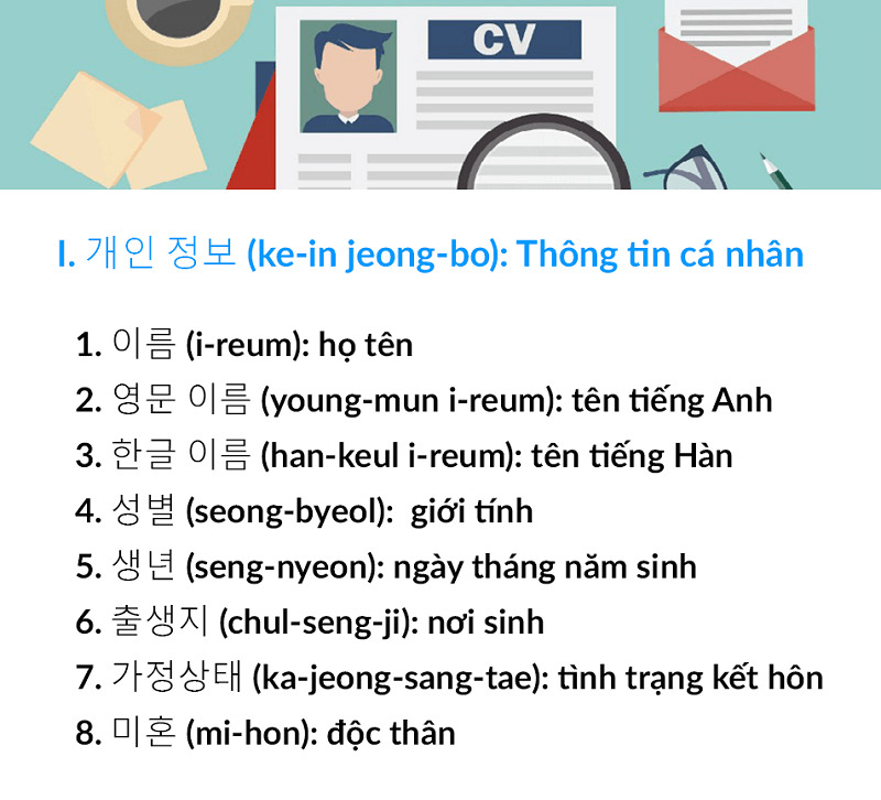 Các mục cơ bản cần có trong CV tiếng Hàn