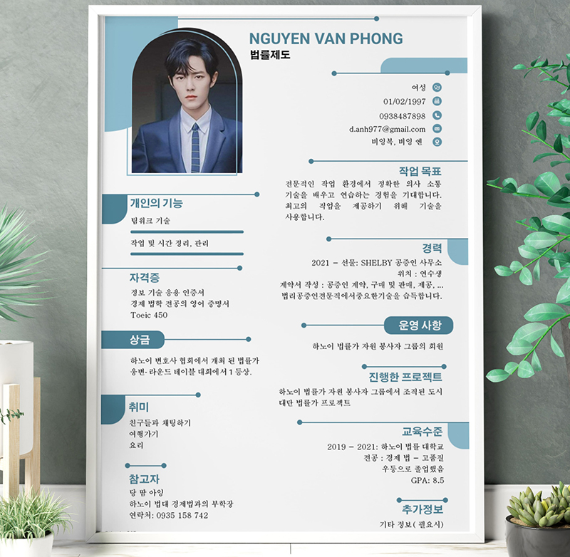 Một CV tiếng Hàn chuẩn thường bao gồm các phần sau: