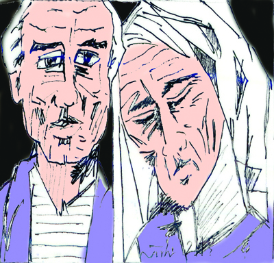 Hơn một tuần trôi qua, người chồng vẫn không thấy vợ mình anh kiệt sức vì đói rét. Anh đến một tảng đá to nằm thì phát hiện xác vợ mình nằm ngay bên cạnh. Thương vợ quá, anh khóc ròng rã cho đến khi chết. Anh biến thành những con ốc bám chặt vào tảng đá, còn người vợ biến thành một cây ngô mọc bên cạnh.