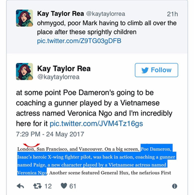 Dù Paige có thể chỉ là một vai thoảng qua như cách mà Ngô Thanh Vân xuất hiện trong Ngọa hổ tàng long 2 nhưng thông tin này vẫn đủ khiến fans Việt của Star Wars háo hức, bởi họ tin những nhân vật mới xuất hiện đều sẽ mang thông điệp nào đó.